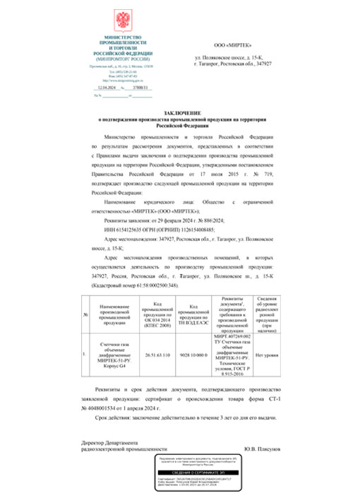 ООО «МИРТЕК — Системы учёта газа» входит в состав Группы компаний «МИРТЕК».